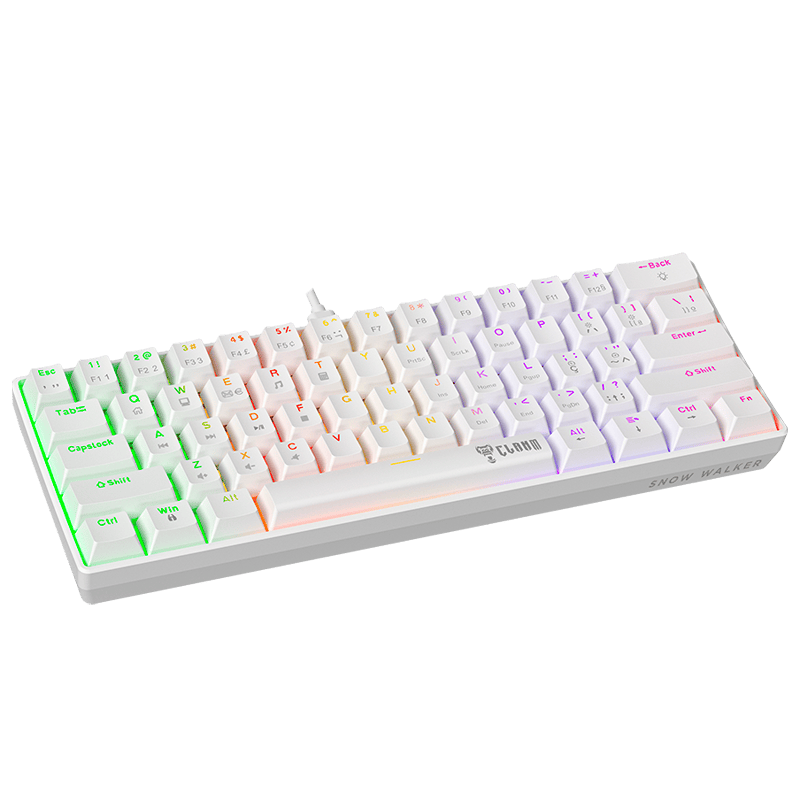 O teclado gamer Snow Walker V2 da Clanm é um teclado mecânico compacto feito para quem quer eficiência e mobilidade. Com switches red, base hot swap. iluminação RGB. software próprio para personalização e design minimalista, proporciona uma digitação fluida e precisa, sem abrir mão do estilo gamer.